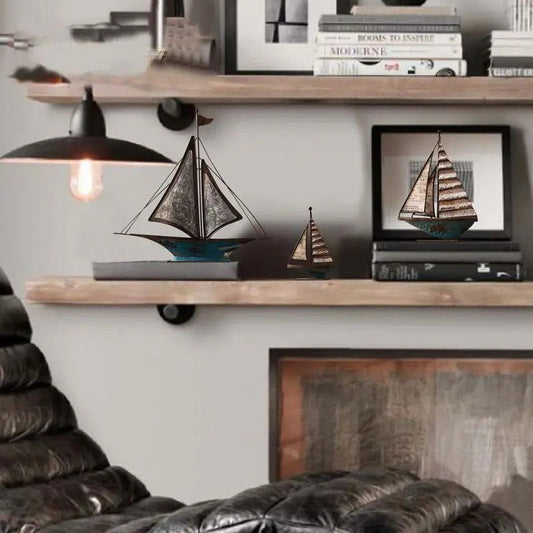 Velero de madera hecho a mano - Modelo decorativo de barco náutico